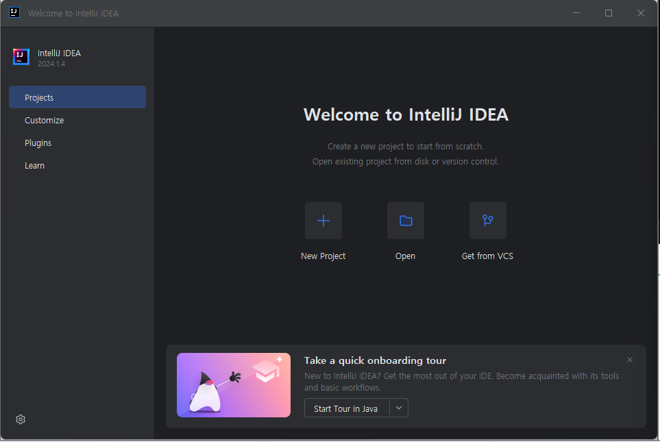 IntelliJ IDEA ์คํํ๊ณ ๋ฉ์ธ ํ์ ์๋ <New Project>๋ฅผ ์ ํํ์ฌ ์๋ก์ด ํ๋ก์ ํธ๋ฅผ ์์ฑํ๋ค.